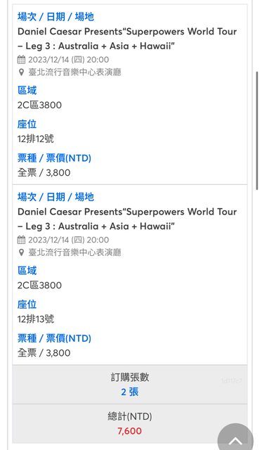 標題[售票] 12/14 Daniel Caesar 2C連號降價售