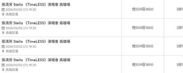 標題[售票] 【售】張清芳橙區三排1800*4