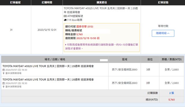 採虛擬轉帳 期限至13:50 匯款後下周給取票序號ibon自取