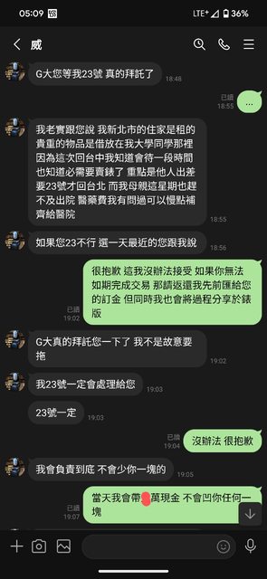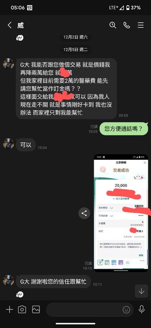 → ccasabulu: 用醫藥費這理由要多匯訂金 就要警覺啦 12/26 10:07