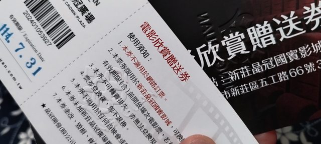標題[售票] 新莊晶冠電影票2張(~2025.7.31)