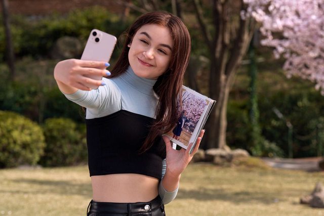 同樣透過照片,她的身影與媽媽的過去重疊於同一棵櫻花樹前。