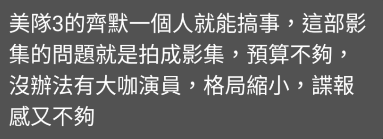 推 hugr85: 美隊二大牌應該也比較多,預算真的不該是藉口 07/17 08:39