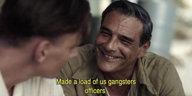 居然一齣德劇也談「疑美論」誒這是在認知作戰嗎 XD 但與其在昔日德美今日中美之間選邊站隊,本劇更像是提出「理想主義的殞落」與世故現實的當道:在這末日般的拿坡里海軍基地不論德軍義軍都已是看板,真正掌握後勤補給生殺大權的還是墨索里尼最恨的「黑手黨」,法西斯政權壓迫他們納粹德國更不屑與之為伍、但美國人在商言商不吝給他們「黑幫轉軍官」敵後蠶食裡應外合未來有錢大家賺!耳聽