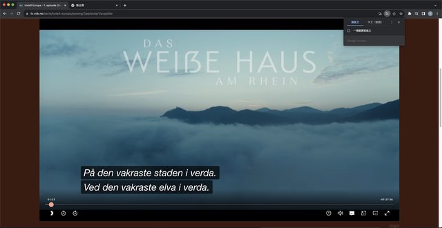 瀏覽器可做「網頁即時翻譯」,只要翻一次就能讓每句字幕都一句句自動翻下去!這很好用可惜支援的串流平台不太多...