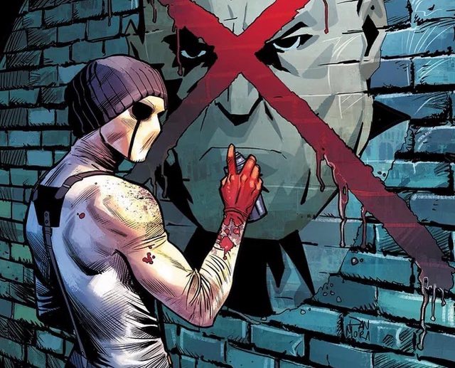 Art》漫畫中,夜魔俠和「盲點」發現了一幅由 100 多位異人族受害者的血所繪製的畫作