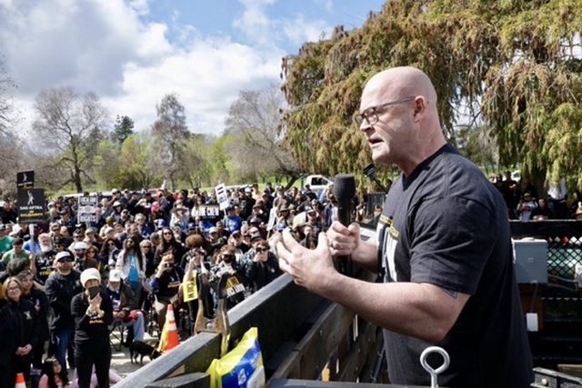 週日在洛杉磯一場逾兩千名劇組共襄盛舉的集會上,卡車司機工會理事長西恩歐布萊恩(