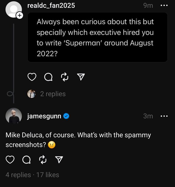 亦有網友問到,當初究竟是哪位華納兄弟影業高層找岡恩籌拍《超人》的?