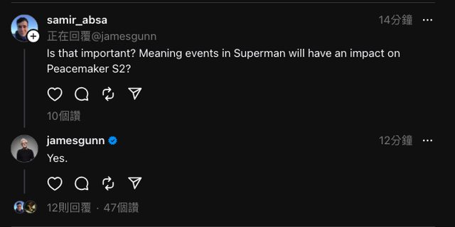 另外,網友也問到,岡恩的《超人》是否原本屬於 DCEU,只是後來他接管 DC 後才改成