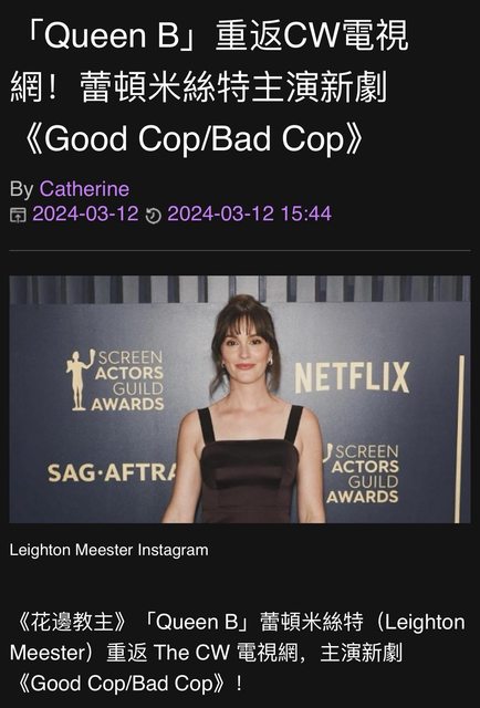 心得:恭喜Leighton獲得新片約,只是不知道她新劇要演警察XD