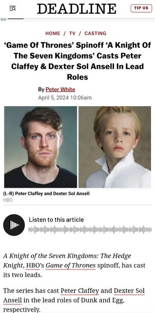 Dunk與Egg將分別由Peter Claffey與Dexter Sol Ansell飾演。