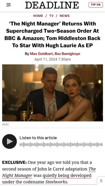 標題[新聞] The Night Manager夜班經理回歸確定