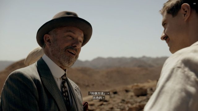我當然先想到《侏羅紀公園》系列尤其《侏羅紀公園 3》(2001)!雖然「考古學」與「古生物學」縱有部分共同知識但領域其實天差地遠,但同樣都是科學家們為了知識投注熱情需人贊助的事業,小時看《侏羅紀公園 3》預告裡 Sam Neill那一聽到「有人贊助」就雙眼發光喪失理智 XD 的表情眼神令我一生難忘!不過現在他年紀老了來到本劇改演贊助人,這次輪他有錢最大傲慢耍笨令真科學家臉上三條線:E01 故事從史實考古學家主角 Howard Carter的 1905 早期挖掘開始,他是孤鳥不喜交際直到 1914 才遇到貴人,貴人 Carnarvon伯爵慷慨解囊贊助考古出於什麼使命感?