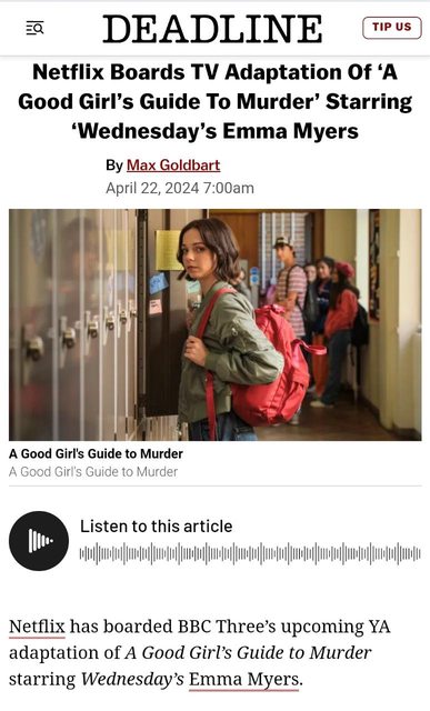 Netflix宣布簽下由影集Wednesday中的小狼女Emma Myers主演,BBC 3即將播出的影集