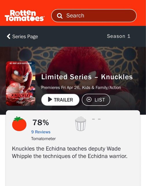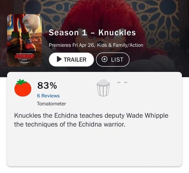 標題[閒聊] 《KNUCKLES》S1 爛番茄開盤