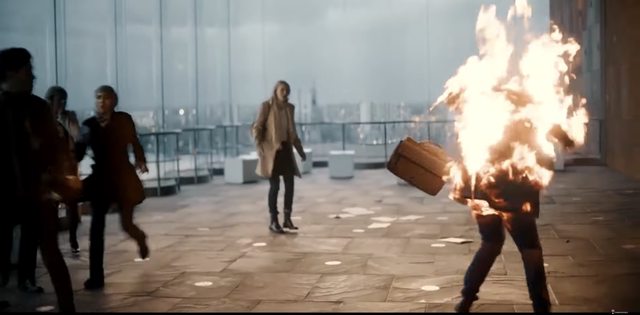 在 Disney+逛法國平台,找到一齣比法合製的 arte 神秘劇 Moloch (2020),海報上的火燒人身非常嚇人、提醒我們劇名就是亞伯拉罕諸教都有紀錄且都敵視的近東古代神祇「摩洛克」、他惡名昭彰的傳統形象就是「火祭兒童」!難道本劇就是談他再臨人間重新激起火祭風潮與密教信仰嗎?E01 開鏡第一景廢話不多說,場景是安特衛普當代地標「河濱博物館」Museum aan de Stroom,一個西裝筆挺的金融金童踏上手扶梯,居然毫無外人外力他已莫名冒煙起火 (!)根本是「自燃」!難道如今「火祭」已不假人手而能以神力操控?有此神力者難道就是傳說中的「摩洛克」本尊?