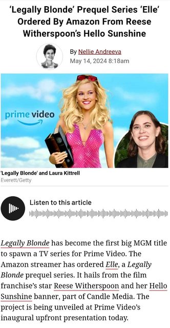 而Legally Blonde就是Amazon收購MGM時所看重,隸屬於MGM智財資產的重要IP之一,並有