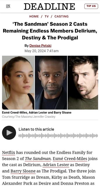 標題[閒聊] 睡魔第二季無盡選角出爐