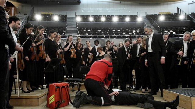 首先樂團只幾位配角其餘都路人,行政竟只一位「行政總監」焦頭爛額,負責場地的 crew 就一位業餘小弟臨時被拔擢進來;然後這樂團三天兩頭有人倒下或死亡,包括兩次台上倒下更有一次後台槍殺,一間樂團搞成這樣難道文化部長與巴黎市長都沒要介入?然後這些團員指揮與行政總監有什麼「音樂之愛」或追求什麼「音樂卓越」嗎?E01 是曾有古典樂的「千里馬遇上伯樂」、亦有雄心壯志的「古典音樂民主化」宣言,不過從 E02起驚悚連連幾忘卻音樂志業;它的古典選樂就耳熟能詳的傳統曲目,選曲無關心境情境演出排練亦無演繹解說,並沒要為古典觀眾打開新視野。