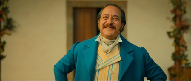只可惜完美隊長 Enrique只是官府二把手,大總管還是「上加利福尼亞總督」Pedro Victoria,由以《伊莎貝女王》等多齣經典西劇走紅的上代小生 Rudolf Sancho煞氣演出才是反派梟雄!他在上流社會杯觥交錯掌開發大權、殖民莊主與境外勢力紛與他官商勾結,未開發的與已開發的 (!)土地都由他分配利益、如遇絆腳石自有辦法讓對方消失,對原住民不當人看待就放慢速度無聲滅絕吃定無人聞問、需要 Enrique違背良心代為髒手時只需以「紀律」施壓就手到擒來... 而對付 Zorro的方法就是搞宣傳戰抹黑鬥臭蠶食其民間支持!只是唯我獨尊到處使壞會不會踢到鐵板?