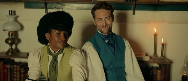 (5) 掌握傳統文化力的則是法國報社主編 Janus與黑人女記者 Harriet,一開始 Diego初返家鄉人生地不熟都靠他們幫忙牽線,因為他們報社《加利福尼亞人》El Californiano 就專門遊走上流查案揭弊立志以筆為劍!兩人初識 Diego就看他一臉想報仇樣 XD 都知未來查案路上會是好朋友... 只是本劇在「新聞」這塊也有些另類思辨:Zorro 到底是什麼?是個英雄還是個惡棍?是個真實英雄抑或只是個形象?是個固定的人抑或只是件衣裝?如果 Zorro這概念如此流動,是否報社也能主動創造「Zorro 神話」?那外界奸人難道不會有樣學樣帶政治風向毀 Zorro人設?