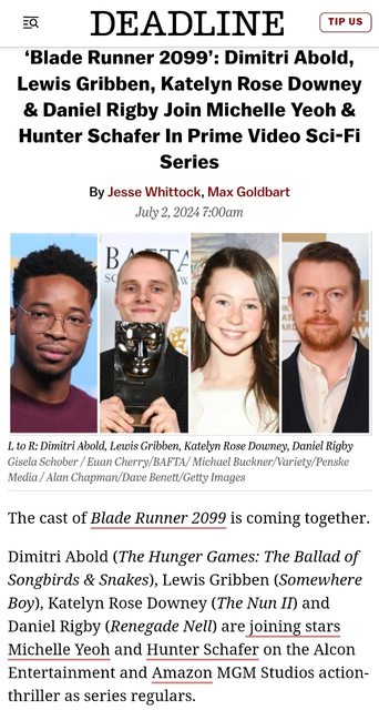 Amazon預定,由楊紫瓊與Hunter Schafer主演的[銀翼殺手2099]公佈了固定班底及客串