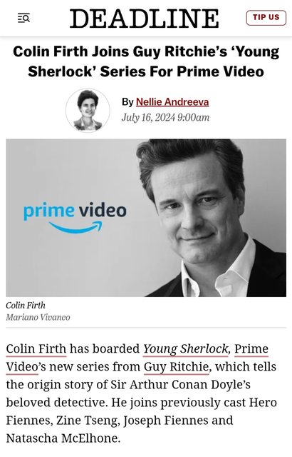 蓋瑞奇執導監製的Amazon影集[Young Sherlock]少年福爾摩斯又加入一名重量級的後援