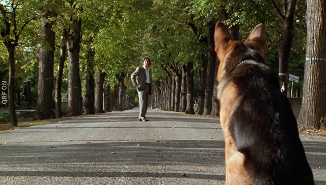不過此劇畢竟狗狗才是真主角,雖然人類查案戲份繁重才是正規的推理解謎,但狗狗 Rex總在案情觸礁時與主人心有靈犀、伸出鼻子低視角攝影一路嗅到底、揪出壞蛋後也不聽主人指揮 (?)就直接上演狗狗追車 (!)不惜上天下海!只是這 1994 開播的 S01E01 緣起故事卻以悲傷開場:奧地利維也納市中心「聖史蒂芬教堂」廣場對面、1990s 才落成開幕的 Haas Haus屋頂露天咖啡座、這天有個俄國佬 Zhukov 和一個奧地利商人 Spitzer來此見面吃薩赫蛋糕,誰知後者留個手提箱去上個廁所 (!)炸彈爆炸殺死俄國佬引起大騷動!一警一犬率先趕到可惜這警很快中槍身亡...
