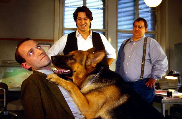 本劇他演男主 Richie 與狗狗 Rex對戲就是鐵漢柔情追打玩鬧像個大孩子!不過也有個害羞內向的內勤搭檔 Stockinger 一看狗狗就手足無措 XD 都被 Richie 捉弄取樂... 這在九零警匪好像就是種 buddy buddy但在今日恐有「職場霸凌」之嫌?總之本劇十季就由這兩人一狗三個角色展開第一季火花,飾演 Stockinger 的奧地利演員 Karl Markovics 則曾以奧斯卡最佳外語片《偽鈔製造者》打開國際知名度、外型有點獐頭鼠目卻演過許多有趣角色、近年在熱門德劇《巴比倫柏林》中也有參一咖... 總之有在追德奧影劇的看到兩位大咖昔日青澀時光,那都是滿滿懷舊風情呀。