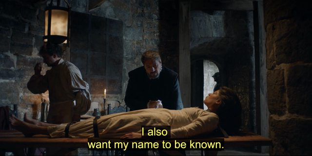 (2) 二姐 Catherine的挑戰則是面對這「父權世界」:她本嫁漁民領袖卻很快喪夫、繼承夫業領導捕鯨做得有聲有色、覺得當個寡婦能發揮長才真完美人生... 然而 E01獵巫開始「白色恐怖」逼她下嫁領主 Tristan瞬間跌入人生噩夢!雖然這 Tristan空有權力人卻很傻也不難敷衍、何況貴族娶妻只為佔有女性財產其實另有情婦、只要忍一兩次「夫妻義務」聲稱「已有身孕」就可躲過每日性暴力... 但慢慢發現自己喜歡一位宮女其實是「女同」、回視自己被迫與男上床甚至懷了男人孩子真撕心裂肺!但如何將避無可避的「父權」拿來為我所用?才是她要修習的人生新智慧。
