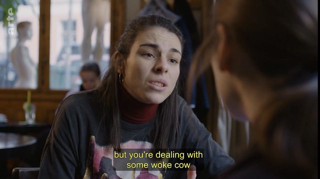 不只 David對自己說法語帶保留有難言之隱、連 Tereza 也吞吞吐吐閃爍其詞彷彿保護著什麼,而如此吞吞吐吐無法大方坦然向親友求助、遲早也將築起高牆異化親友裡外不是人:首先她分享 #MeToo 經驗也是看場合說話,即使在相處自在的新聞系女性友人面前也是淨說她們想聽的、在出版社主編與行銷面前這 #MeToo 故事更充滿女力政確等市場考量,甚至在自己女友面前總忽冷忽熱從不敞開心扉、即使兩人交往進入關係仍有心理禁區不容碰觸、總是有需要時找女友做愛沒需要時又冷若冰霜 XD 這般「忽冷忽熱」在同性戀中會傷害女友、那在異性交往難道就不會傷害男生?