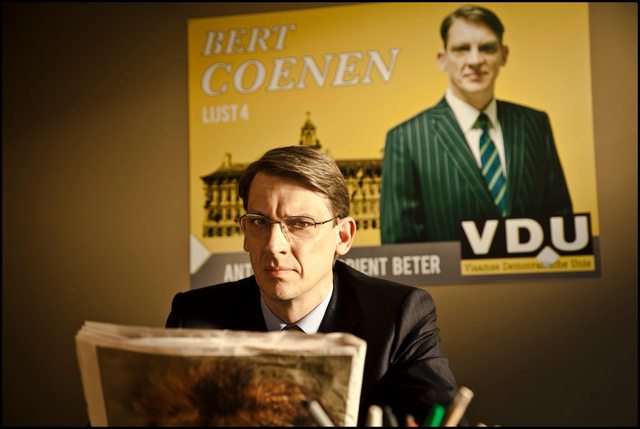 (2) 劇中挑戰現任市長的右派新星 Bert Coenen 由比利時影劇兩棲雙語通吃的 Peter Van den Begin 演來雄心壯志充滿挑釁步步進逼,比喻的是現實中 2012 出馬參選成功當選至今已任市長 12 年的 Bart De Wever!現實中他領導的右派政黨「新法蘭德斯聯盟」Nieuw-Vlaamse Alliantie 在此劇則化身為「法蘭德斯民主聯盟」Vlaamse Democratische Unie集結民族主義與保守派選民。劇中媒體與幕僚總在他與市長之間炒作對立給選戰加溫,他倆也總配合演出隔空喊話俱聲嘶力竭,但兩人私下實是老友還常出來共飲一杯,共同圍堵的還是極右派「法蘭德斯利益黨」。