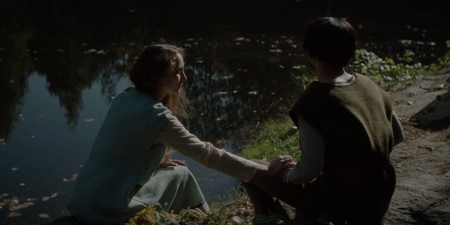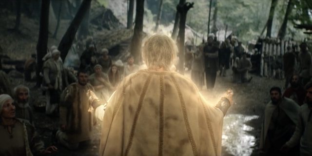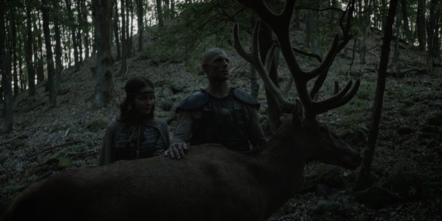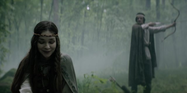 在此高山聚落宛如仙境的森林與溪湖間,開場的年輕主角 Draha & Belo 是對即將成年的金童玉女: Belo 正努力練習射箭參加「成年禮」森林考驗,要當個勇士獵到鹿頭才能接受「剃髮儀式」成為真男人,然而他練箭時跟 Draha打情罵俏卻被她捉弄 (!)我們才知這少女主角殊不簡單:男孩箭指哪個地方她不看就知,甚至男孩眼睛聚焦那個物件她也心知肚明,顯然在這前基督教的原始大地她有超能力能感應萬物!只是真要說「上達天聽」與斯拉夫諸神溝通 (!)當然聚落裡還有真正的祭司負責... 只是祭司這行又是怎麼代代相傳下來的?是靠先天超能還是靠後天努力?