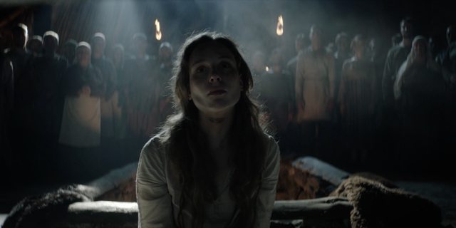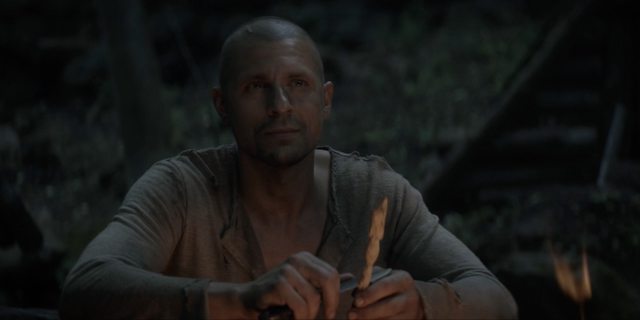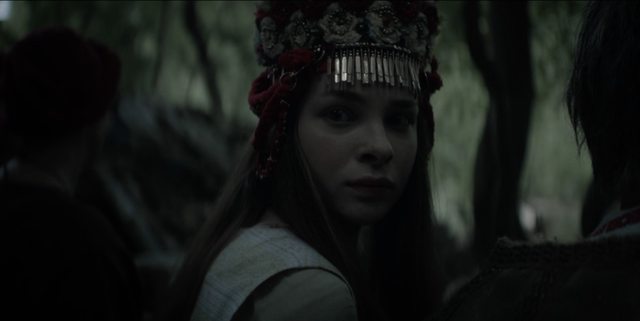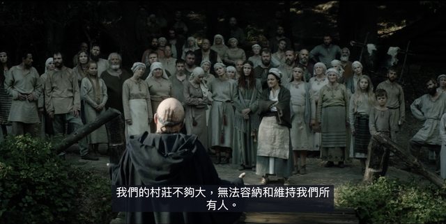 當然走向霸權擴張還有一段緩慢進程,Furnau 這邊自 E01 就「弒父奪權」後步步走偏的黑化轉型還待全季慢慢發酵,真要揭示文明正道的還是 Great Table這邊,畢竟他們名叫「大桌子」那基本精神就是海納百川與人為善。只是這種精神要維持傳承也須步步為營,畢竟部落存活充滿危機許多小事都能蠶食人心:(1) 首先他們本就為了躲避「阿爾瓦人」歷代輾轉遷到這高山森林,吃定阿爾瓦人草原民族一般劫掠都留在地面;(2) 然而住在森林諸般神秘令人緊張,有事發生不是訴諸鬼神就是集體獵巫,譬如女主 Draha小時跟弟弟兩人入林一人回來 (!)村裡都有流言蜚語!