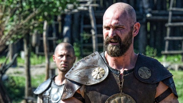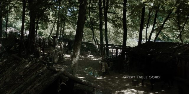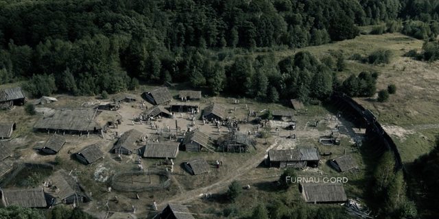 E01 故事開始,空中攝影帶我們看「潘諾尼亞盆地」一片大草原,與草原北端「喀爾巴阡山」的蓊鬱森林,在此山腰有個平原防禦聚落喚作 Furnau Gord、高山則有個森林防禦聚落喚作Great Table Gord,兩邊有段距離各自為政但平日也互通有無、本劇就來談兩個不同斯拉夫部落在這年代的「雙城記」,先從日常生活與民俗文化勾勒他們處境的不同:山腰這 Furnau 聚落擁有完整軍隊先進兵甲與更文明的服儀,因為他們身在山腰接觸商路同時也鄰近外敵;高山這 Great Table聚落則軍事原始兵甲落後服儀粗野,因為身在高山遠離商路也遠離外敵,比起山腰部落更純樸樂天。