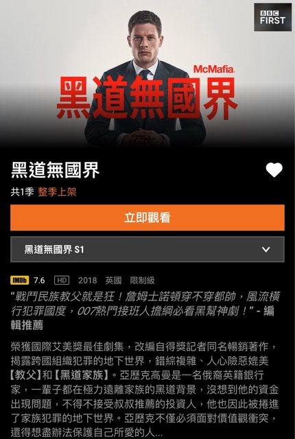 標題[閒聊] McMafia黑道無國界無雷推推!