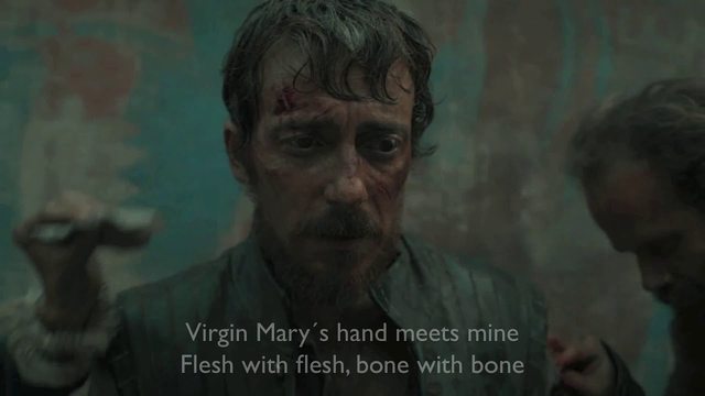 這當然成了本劇面向全球西方與拉美觀眾的核心提問:這些從大航海尋找貿易據點、慢慢做成殖民淘金的「征服者」們,他們儘管人在西班牙都是「國王的僕人」「上帝的戰士」既虔誠聖潔又高風亮節、為何到了新大陸能對同為人類的異種做出非人之事?難道他們都是嗜血惡魔純為自己利益把他人性命全當作螻蟻?這種原始獸性的血氣士兵當然也是有,畢竟一整個西班牙「殖民船隊」販夫走卒地痞流氓什麼投機客都有,但至少以知識份子與貴族軍官組成的領導階層絕不只是這個樣... 柯蒂斯自己就是小貴族出身、還在學術大城 Salamanca學過法律,怎麼說也該是個文明人?