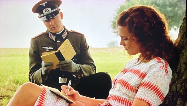 這對比首先體現在戰時:Helena她家大宅被德國徵用,德軍看似秋毫無犯她老爸對德也公事公辦,儘管幾位少女閨蜜眼看現在沒有比利時男卻有一堆制服德男 <3 已忍不住開始心猿意馬中?但德軍就算再飽讀詩書談吐溫雅彬彬有禮、我們就是「佔與被佔」的權力關係絕無真誠交心!當然如此堅守自我是會被德軍敬重還是令他們惱羞成怒 (?)那真需上帝保佑呀... 不過上帝若沒保佑 (!)倒也不失為一種暢然醒悟、從此不再相信任何外在權威而只全心堅守自己的「本真」!看過去線的少女 Helena 如何創傷長大,現在線的外孫女 Alexandra也知外婆如何變成如今這般鐵面冷靜。