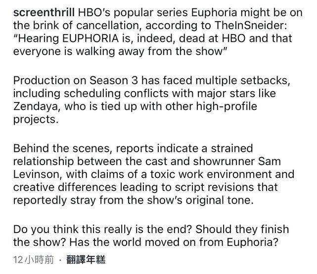 "Hearing EUPHORIA is, indeed, dead at HBO and that everyone is walking away from