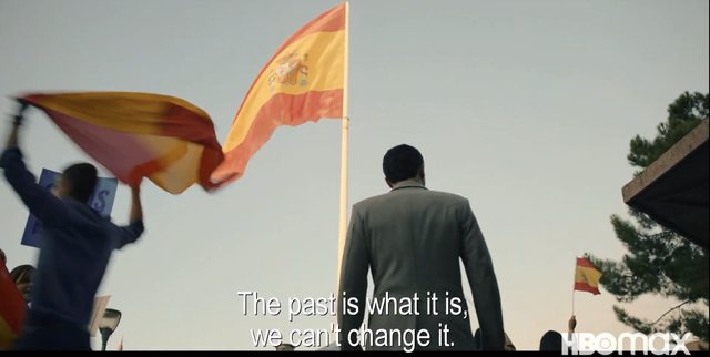 也許正是他 1961 年輕大器的「解甲歸田」,使他到了 2021 仍能「順應時勢」欣然接受這百花齊放,畢竟當年都知「戰爭不是為了戰爭」而是迎來和平讓人們安居樂業、那如今新新人類的「安居樂業」就是這樣五彩繽紛值得欣慰同歡呀。當然這個時代也有這個時代的問題,雖無過去佛朗哥明目張膽的威權宰制、卻有民主時代的貪污腐敗政爭內鬥,不論民主極權哪種時代都會有人戮力從公把事做好、也都有人抓準時代風向見縫插針謀自己利益!本劇這 2021 就有「西班牙大選」左右派爭得不可開交,殊不知上代特務已有人伸出黑手 (!)綁架謀殺挑撥煽動唯恐天下不亂!