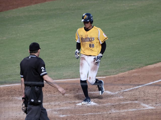 宋88第二打席一壘安打,然後靠著失誤+內滾上三壘 (咳…如果出現在第二局該有多好…可惜沒如果)