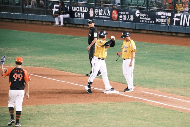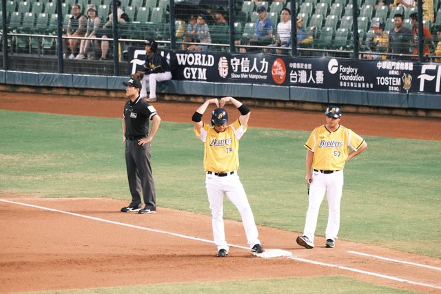 八局下志豪一壘安打上壘 靠著基宏安打一舉推進到三壘 真的是拼了老命在跑