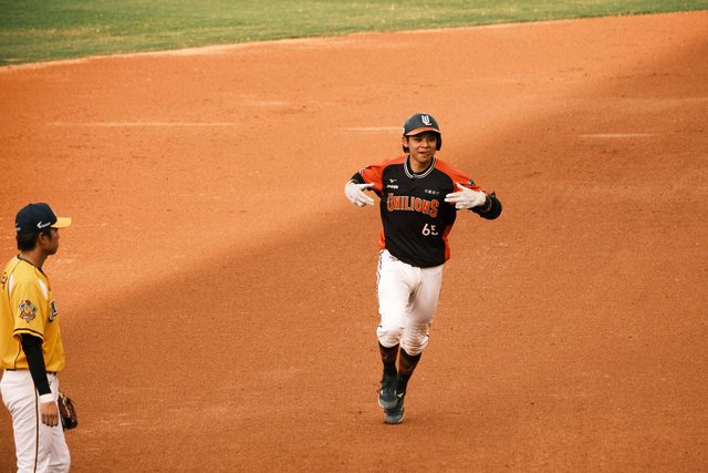 周董八局下靠著喵喵益全失誤 成功送回三壘的志豪回來得分 追平比數