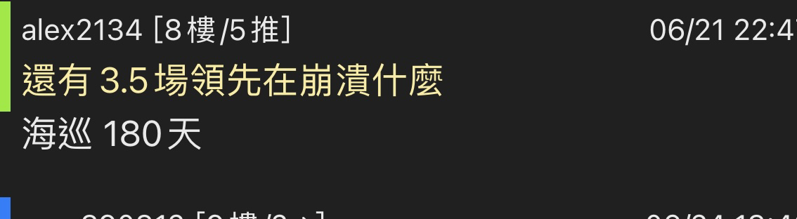 → a12367227: 繼續站穩打擊王06/27 21:49
