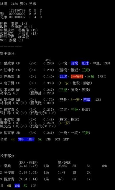 標題[情報] G159 獅0:1兄弟 全場數據box