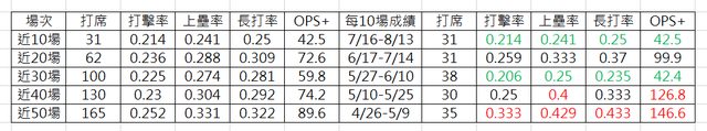 → yanilh: 先看出統計意義上的變化。白話來說,如果打者短期OPS低潮 08/14 17:16