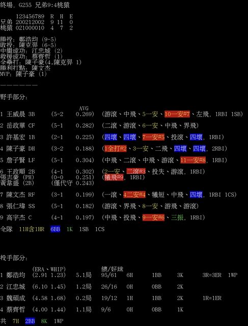 標題[情報] G255 兄弟9:4桃猿 全場數據box