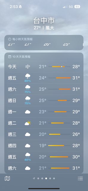 → cakeGJ: 蘋果內建天氣是抓取某國外天氣預報資料,而非台灣的氣象 10/25 10:04