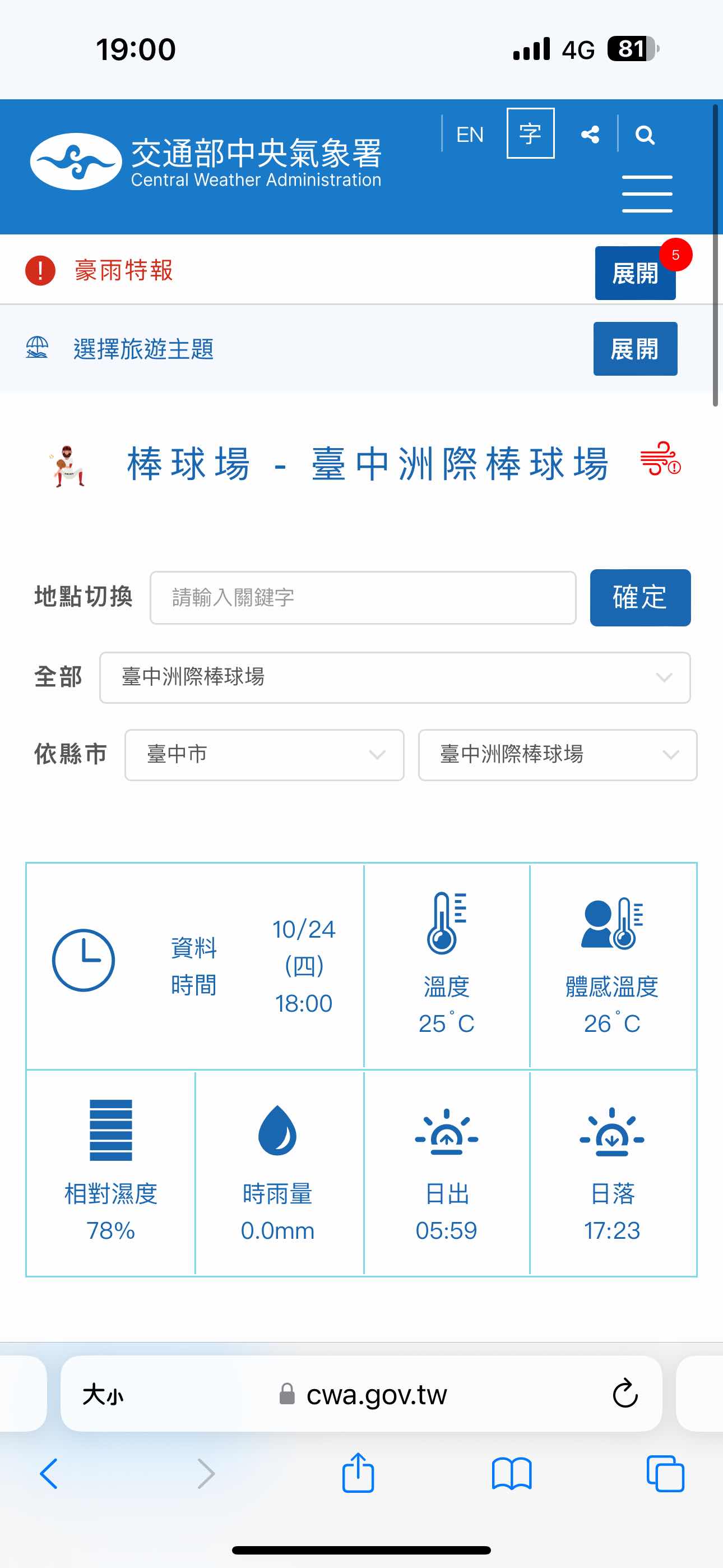 推 caesarh: iPhone內建的不是抓台灣氣象署資料 非常不準 10/24 16:17