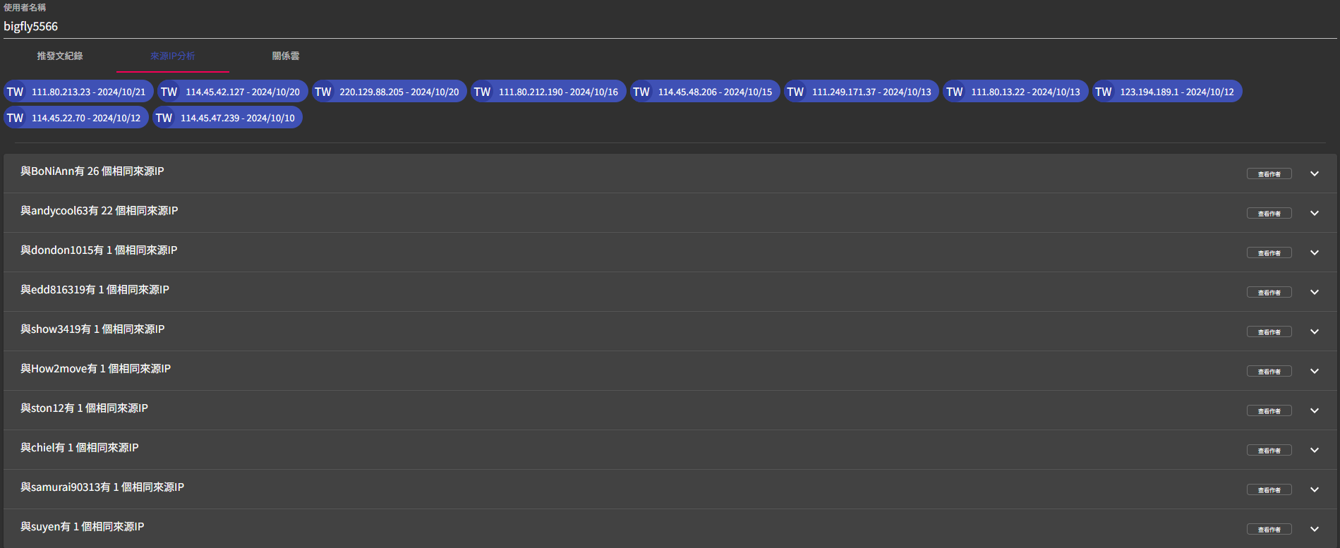 推 BigFly5566: 蛤?IP只有一組相同就同一人?多沒常識阿跳板仔 10/30 01:46